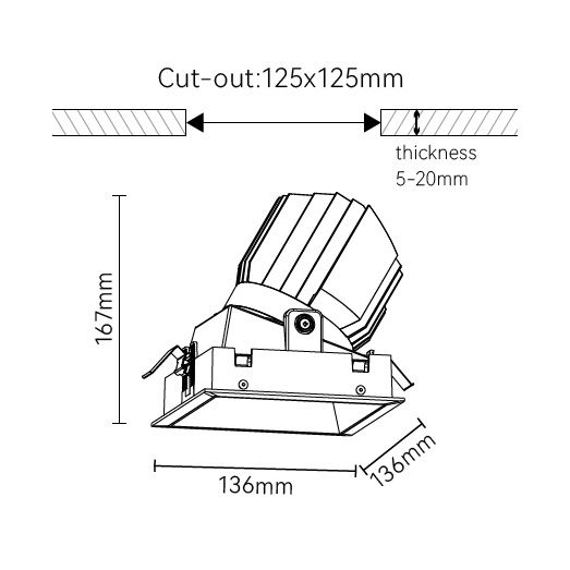 - Beam Angle: 18°/ 33°/ 50°/ 20°(36W)/ 36°(36W)/ 52°(36W)