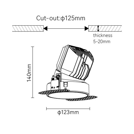 - Beam Angle: 18°/ 33°/ 50°/ 20°(36W)/ 36°(36W)/ 52°(36W)